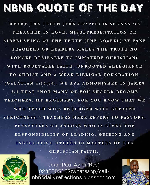 Paul reminded the Galatians that he had no personal grudge with them and took the opportunity to remind the Galatians of their love and affection for him when he first brought the Gospel to them. Even in his ill health and deplorable condition they did not reject him but showed him unconditional love and accepted the Gospel he brought to them and became believers in Christ. (Galatians 4:12-14) In other words, Paul brought them the truth (the Gospel) and they showed him, love, accepted and believed in the truth (Gospel). When the Galatians started to entertain false teachers, Paul again was telling them the truth and they now dislike him because they have been airbrushed by fake teachers who taught them that justification is not through faith in Jesus alone but through the works of the Mosaic law and customs. Paul addressed the Galatian Church, “For I testify to you that, if possible, you would have gouged out your eyes and given them to me. Have I then become your enemy by telling you the truth?” (Galatians 4:15-16). Where the truth (the Gospel) is spoken or preached in love, misrepresentation or airbrushing of the truth (the Gospel) by fake teachers or leaders makes the truth no longer desirable to immature Christians with doubtable faith, unrooted allegiance to Christ and a weak Biblical foundation. We are admonished in James 3:1 that “Not many of you should become teachers, my brothers, for you know that we who teach will be judged with greater strictness”. Teachers here refers to pastors, presbyters or anyone who is given the responsibility of leading guiding and instructing others in matters of the Christian faith.