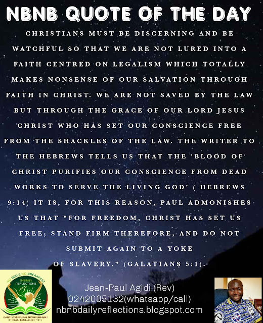 Similarly, the law being taught by the fake teachers came to subvert the promised salvation and freedom in Christ given to the Galatians. Christians must be discerning and be watchful so that we are not lured into a faith centred on legalism which totally makes nonsense of our salvation through faith in Christ. We are not saved by the law but through the grace of our Lord Jesus Christ who has set our conscience free from the shackles of the law. The writer to the Hebrews tells us that the ‘blood of Christ purifies our conscience from dead works to serve the living God’ (Hebrews 9:14) It is, for this reason, Paul admonishes us that “For freedom, Christ has set us free; stand firm therefore, and do not submit again to a yoke of slavery (the law).” (Galatians 5:1). In other words, we allow the law to subvert the promise of freedom, grace and justification through faith in Christ when we still believe that our righteousness and salvation is based on how meticulous we have followed the law to the letter, the law will always find us guilty and hold our conscience captive because of our sins. My dear friend, we are justified because of our repentance and faith in Jesus, who has done and completed all the requirements of the law on our behalf so that in Him we shall experience true freedom and purification of our consciences. The law came to subvert the promise of God through Christ but if we have faith in Christ we shall be free from the subversion and enslavement of the law. Shalom.