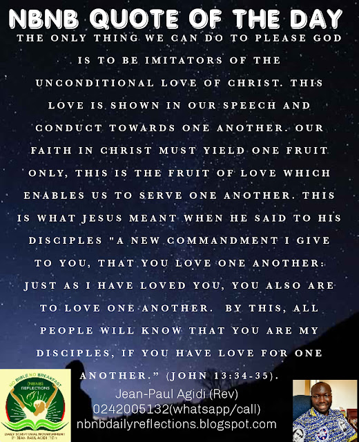 Paul directs the Galatians’ attention to the only thing required of a person who has been justified through faith in Christ. Paul wrote that that “Only do not use your freedom as an opportunity for the flesh, but through love serve one another. For the whole law is fulfilled in one word: “You shall love your neighbour as yourself.” But if you bite and devour one another, watch out that you are not consumed by one another.” (Galatians 5:13-15). In other words, the only thing we can do to please God is to be imitators of the unconditional love of Christ. This love is shown in our speech and conduct towards one another. Our faith in Christ must yield one fruit only, this is the fruit of love and service to one another. This is what Jesus meant when He said to His disciples “A new commandment I give to you, that you love one another: just as I have loved you, you also are to love one another. By this, all people will know that you are my disciples, if you have love for one another.” (John 13:34-35). The only thing the world will experience as a sign of our faith in Christ is the love of Christ shown to everyone we come across, therefore be mindful of what you say and how you treat people as a believer. Shalom.