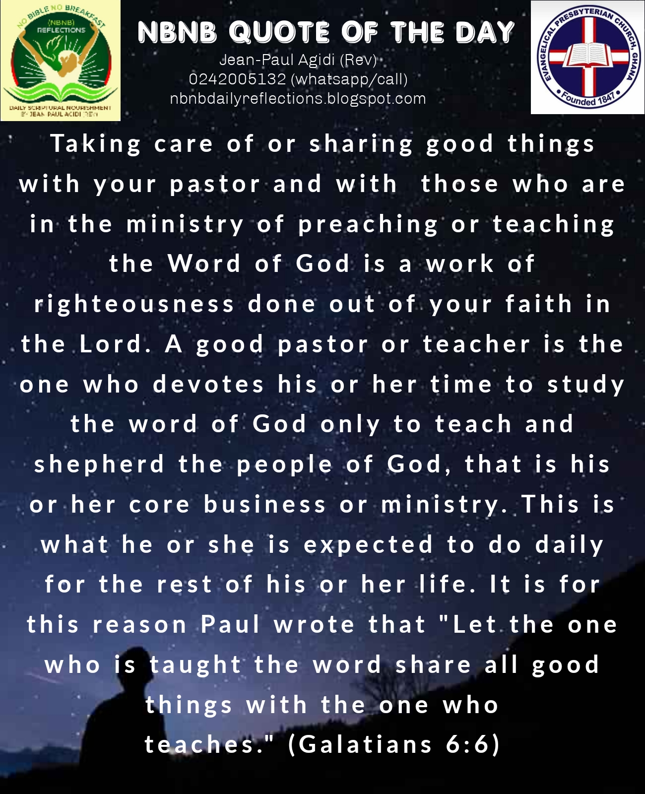It is again important to note that taking care of or showing kindness by sharing good things with your pastor and with those who are in the ministry of preaching or teaching the Word of God is a work of righteousness done out of your faith in the Lord. A good pastor or teacher is the one who devotes his or her time to study the word of God only to teach and shepherd the people of God, that is his or her core business or ministry. This is what he or she is expected to do daily for the rest of his or her life. It is for this reason Paul wrote that Let the one who is taught the word share all good things with the one who teaches. (Galatians 6:6). Let us recall the interaction between Philip and the Ethiopian Enoch in Acts 8 26-40. “So Philip ran to him(the Ethiopian Enoch) and heard him reading Isaiah the prophet and asked, “Do you understand what you are reading?” And he said, “How can I unless someone guides me?” And he invited Philip to come up and sit with him (Acts 8:30-31). The pastor’s core duty is to teach and guide believers to understand the Scripture they read. Many Christians have failed in this regard, if you know the power of the Word of God and its transformational impact in the life of a believer then you will appreciate the effort of a pastor or teacher who studies and by divine knowledge and revelation teaches the Word of truth to help you deepen your faith and relationship with God. To support your pastor is not a favour you are doing for God or your pastor as a person, it is an act of sowing in faith and fulfilling what is required of a believer. Jesus teaches us in Matthew 10:40-42 that ““Whoever receives you receives me, and whoever receives me receives him who sent me. The one who receives a prophet because he is a prophet will receive a prophet’s reward, and the one who receives a righteous person because he is a righteous person will receive a righteous person’s reward. And whoever gives one of these little ones even a cup of cold water because he is a disciple, truly, I say to you, he will by no means lose his reward.”