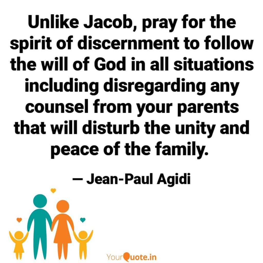 Dear parents your actions and inaction can destroy permanently the relationship your child have with one another and lead to disunity and enmity in the family. Parents must equally love all their children no matter their individual personality traits and differences. They must seek their children’s mutual welfare and not loving and paying attention to one more than the other. Children on their other hand, especially adult children must be discerning and critically reflect before obeying instructions given to them by their parents. As adults we are responsible for the consequences of our decisions and actions. We must follow the will of God in all situations including disregarding any counsel from our parents that will disturb the unity and peace of our family. Shalom.
