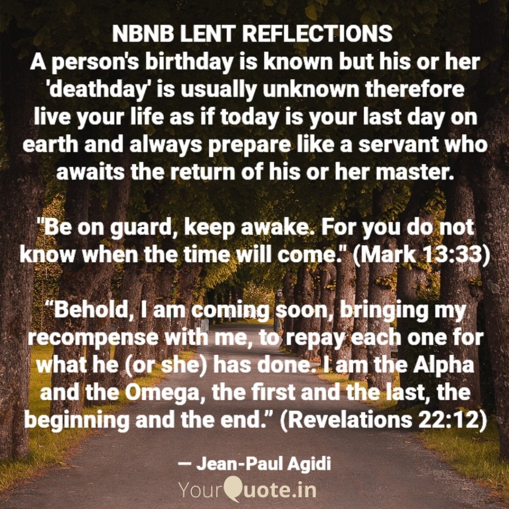 Dear friend in the Lord, our lives are like that of the servants in Jesus’ parable which is the focus of today’s Scripture reading and reflection. We must be on guard and diligently make use of the life, resources and blessings the Lord has bestowed upon us. There are yet more miles to go therefore we must not relent but must be like the first and second servants who gave a good account of their stewardship when their master returned. The first servant who performed excellently well received his commendation and reward when the master said “Well done, good servant! Because you have been faithful in a very little, you shall have authority over ten cities.” (Luke 19:17), however the third servant who gave a flimsy excuse was punished and told that “everyone who has, more will be given, but from the one who has not, even what he has will be taken away. (Luke 19:26). There were even a third category of servant who hated their master and did not want him to reign. Their punishment was death sentence (Luke 19:27)