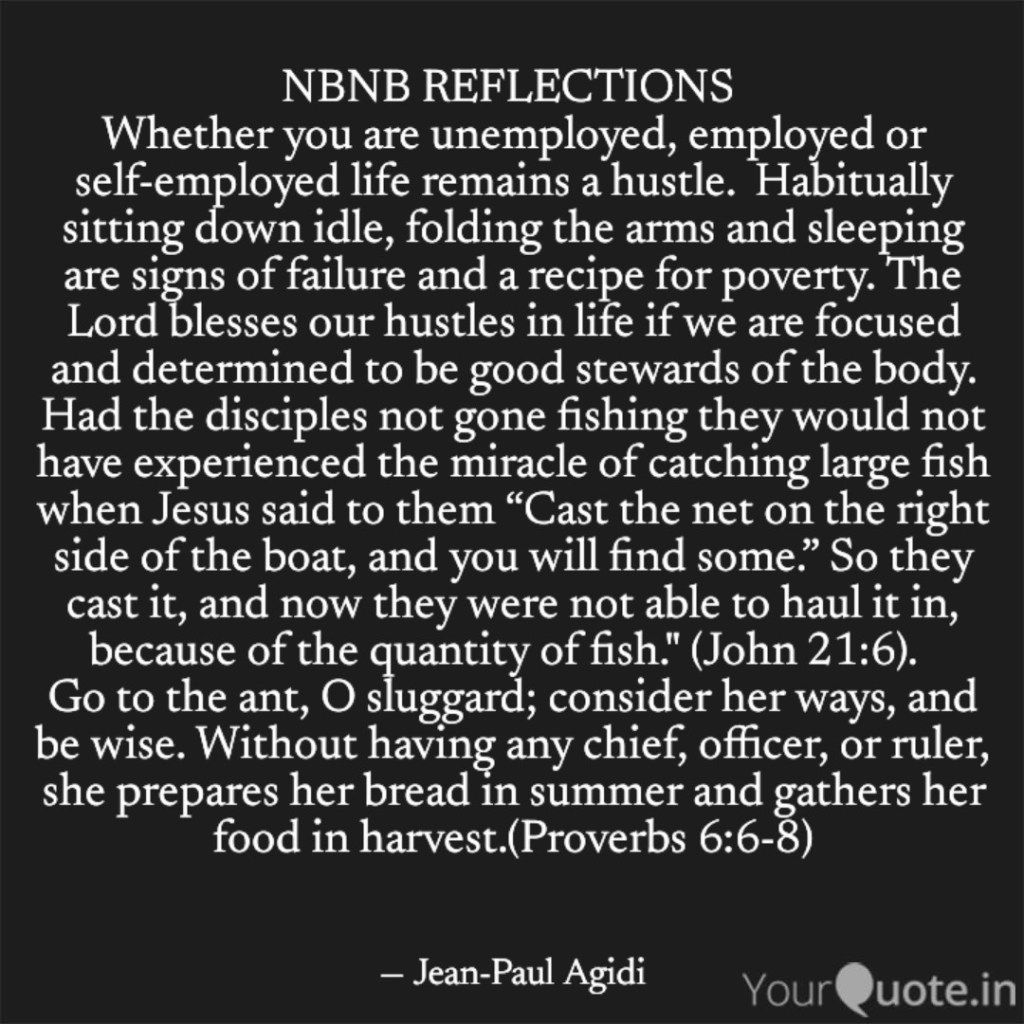 To live an impactful life and be prosperous, we are being challenged to consider the ant, “she prepares her bread in summer and gathers her food in harvest. How long will you lie there, O sluggard? When will you arise from your sleep? A little sleep, a little slumber, a little folding of the hands to rest, and poverty will come upon you like a robber, and want like an armed man.” (Proverbs 6:8-11). People idle when they habitually lie down, sleep, slumber, and fold their hands to rest. Some of the ways some people idle in our generation are being on social media for the most part of the day watching pictures, videos and reading comments, watching telenovelas and spending a substantial time chatting on social media platforms. It is true that we have myriads of unemployed youth out there but let us remember that in summer when the sun is scorching, the ants prepare bread and during harvest season, the ant goes around to gather food from residues that have fallen on the ground during the process of harvesting by the farmers. The ant’s effort can be described as hustling. Whether you are unemployed, employed or self-employed life remains a hustle. Sitting down idle, folding the arms and sleeping are signs of failure and recipes for poverty. The Lord blesses our hustles in life only if we are focused and determined to be good stewards of the body. Had the disciples not gone fishing they would not have experienced the miracle of catching large fish when Jesus said to them “Cast the net on the right side of the boat, and you will find some.” So they cast it, and now they were not able to haul it in, because of the quantity of fish.” (John 21:6). Let us remember that as we hustle for food, money and wealth creation, God must remain at the centre of our lives. It is for this reason Jesus admonished us that “… do not be anxious, saying, ‘What shall we eat?’ or ‘What shall we drink?’ or ‘What shall we wear?’ For the Gentiles seek after all these things, and your heavenly Father knows that you need them all. But seek first the kingdom of God and his righteousness, and all these things will be added to you. “Therefore do not be anxious about tomorrow, for tomorrow will be anxious for itself. Sufficient for the day is its own trouble.” (Matthew 6:31-34) In other words, hustle by all means and work hard but do be anxious about the ephemeral things of this world for your life is in the hands of God, our provider, who is our salvation. Let us seek Him first even as we hustle, for all the prosperity and achievements we yearn for shall be added to our hard work. Shalom.