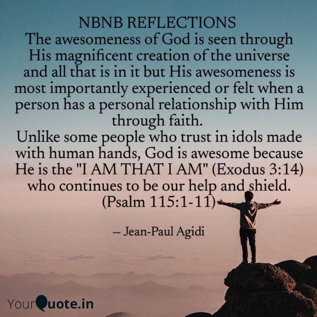 Dear friend, we have been greatly encouraged and given ample reason or evidence to trust in the Lord, for He is the living and awesome God. To experience the awesomeness of God, we are encouraged in James 4:8-10 to “Draw near to God, and he will draw near to you. Cleanse your hands, you sinners, and purify your hearts, you double-minded. Be wretched and mourn and weep. Let your laughter be turned to mourning and your joy to gloom. Humble yourselves before the Lord, and he will exalt you. (James 4:8-10) In other words, we see the awesomeness of God when we have a relationship with Him. We must separate ourselves from sin and live a righteous life by imitating our Lord Jesus Christ through the empowerment of the Holy Spirit. Shalom.