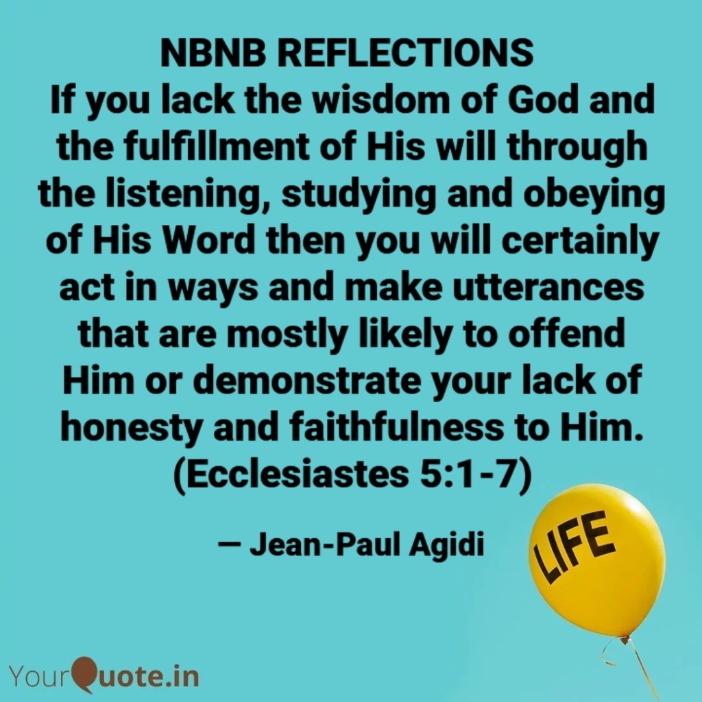 - We must pay attention to the Word of God when it is being preached in the house of God or wherever we find ourselves, many people get distracted during Church service by their phones or chatting with others sitting close to them. They eager dance and give their offerings than to listen to the Word of life and God’s will for their lives. “…To draw near to listen is better than to offer the sacrifice of fools, for they do not know that they are doing evil.” (Ecclesiastes 5:1)