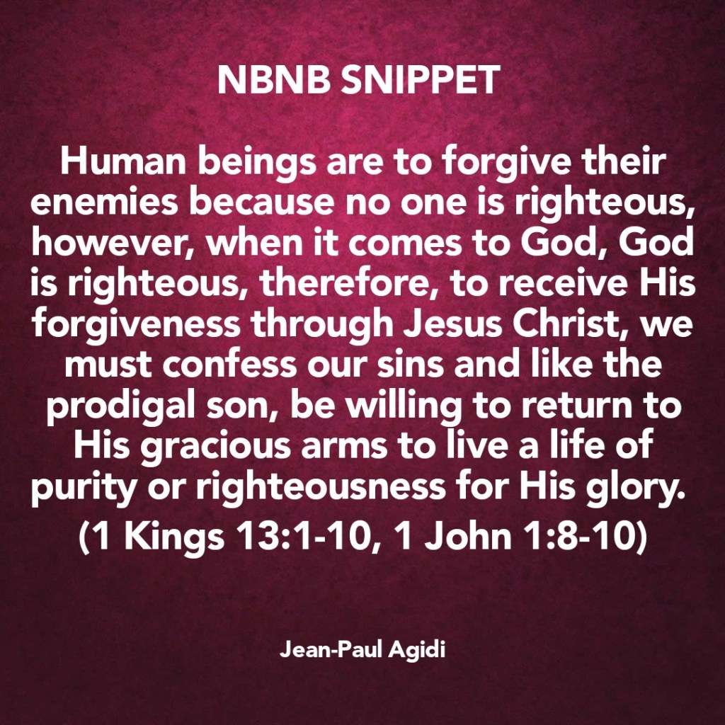 The key lesson of our reflection is that, if God is able to forgive a rebellious or disobedient person like Jeroboam then we are all entreated to follow the perfect example of God to forgive our enemies. After all that Jesus’ enemies did to him to the point of death on the cross, He still taught us to say “Father, forgive them, for they do not know what they are doing.” (Luke 23:34). Dear friend, it is important to understand that “forgive your enemy is not” is not an absolute statement when it comes to our relationship with God, forgiveness from God is premised on repentance or showing remorse. it is for this reason John admonishes us that “If we claim to be without sin, we deceive ourselves and the truth is not in us. If we confess our sins, he is faithful and just and will forgive us our sins and purify us from all unrighteousness. If we claim we have not sinned, we make him out to be a liar and his word is not in us. (1 John 1:8-10) In other words, human beings are to forgive their enemies because no one is righteous, however, when it comes to God, God is righteous, therefore, to receive His forgiveness through Jesus Christ, we must confess our sins and like the prodigal son, be willing to return to His gracious arms to live a life of purity or righteousness for His glory. We are again reminded by Peter that “As obedient children, do not conform to the evil desires you had when you lived in ignorance. But just as he who called you is holy, so be holy in all you do; for it is written: “Be holy, because I am holy.” (1 Peter 1:14-16). Shalom.