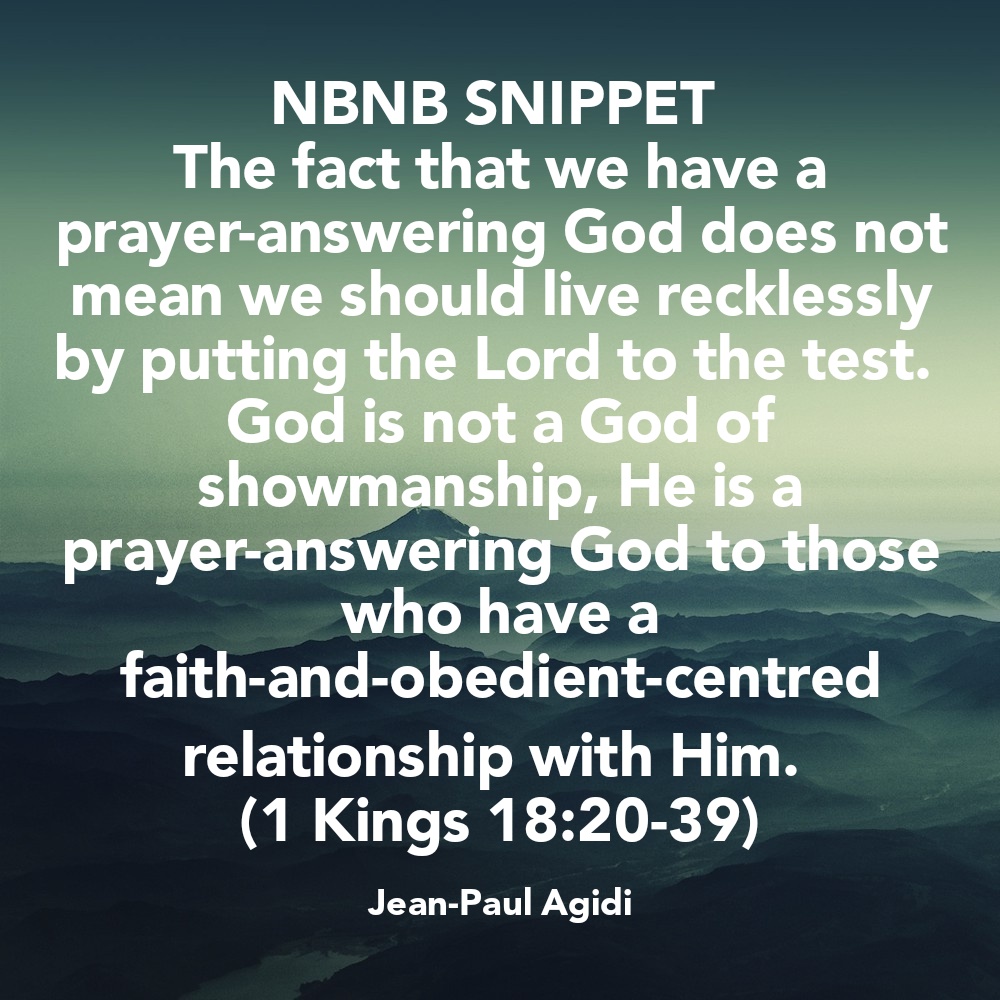 It is important to note that Elijah did not on his own volition order God into a challenge or context of superiority against Baal but it was a direction given to Him by God to prove to the Israelites that the God who answers…He is God, but the god who cannot answer….he is not god, he exists only in name and lives in idols or statutes and in shrines. Indeed, Baal is powerless. After Baal had failed to answer his 450 prophets through dramatic, elaborate and fruitless rituals and prayers, “Elijah the prophet came near and said, “O LORD, God of Abraham, Isaac, and Israel, let it be known this day that you are God in Israel, and that I am your servant, and that I have done all these things at your word. Answer me, O LORD, answer me, that these people may know that you, O LORD, are God,…Then the fire of the LORD fell and consumed the burnt offering and the wood and the stones and the dust, and licked up the water that was in the trench. And when all the people saw it, they fell on their faces and said, “The LORD, he is God; the LORD, he is God.” (1 Kings 18:36-39). Dear friend, the fact that we have a prayer answering God does not mean that we should live recklessly by putting the Lord to the test. Elijah proved the existence of God by doing so at God’s instruction or Word. We will realise that it was a different scenario when Satan tempted Jesus, “If you are the Son of God,” he said, “throw yourself down from here. For it is written: “‘He will command his angels concerning you to guard you carefully; they will lift you up in their hands so that you will not strike your foot against a stone.’” Jesus answered, “It is said: ‘Do not put the Lord your God to the test.’” (Luke 4:9-12). The difference is that in Elijah’s case, he did not put God to the test, He prayed according to His will, however in the case of Jesus, it was not God’s will at that material moment for Jesus to prove His power and existence to Satan who was already aware of who God was. In other words, there is nothing to prove! God is not a God of showmanship, He is a prayer-answering God to those who have a faith-and-obedient-centred relationship with Him. God answered Elijah because it was His will to prove to the people of Israel that He exists and Baal is worthless but God did not need to prove Himself to His Son Jesus that He exists. If Jesus had listened to Satan and threw Himself to be caught by the Angels then He had rather obeyed Satan and not God. The truth is Jesus knew that His Father will always answer His prayer without any form of drama and showmanship at the request of Satan.