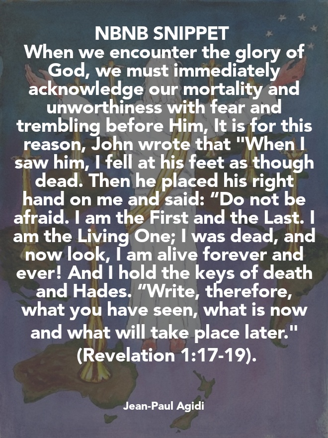 When we encounter the glory of God, we must immediately acknowledge our mortality and unworthiness with fear and trembling before Him, It is for this reason, John wrote that “When I saw him, I fell at his feet as though dead. Then he placed his right hand on me and said: “Do not be afraid. I am the First and the Last. I am the Living One; I was dead, and now look, I am alive forever and ever! And I hold the keys of death and Hades. “Write, therefore, what you have seen, what is now and what will take place later. (Revelation 1:17-19). Dear friend, John’s vision of Jesus reminds and assures us that we are connected to royalty and eternity therefore we must continue to be faithful to God even as we await the actual day of the Lord where the whole world will witness His glory as the King of Kings and Judge of the Universe. Jesus has assured us through John’s vision not to fear as believers and as a Church but to be rest assured He will come again to save those who believe Him and are living for His glory. He will grant us eternal life because He lives forever and ever and holds the keys to death and hades. Shalom.