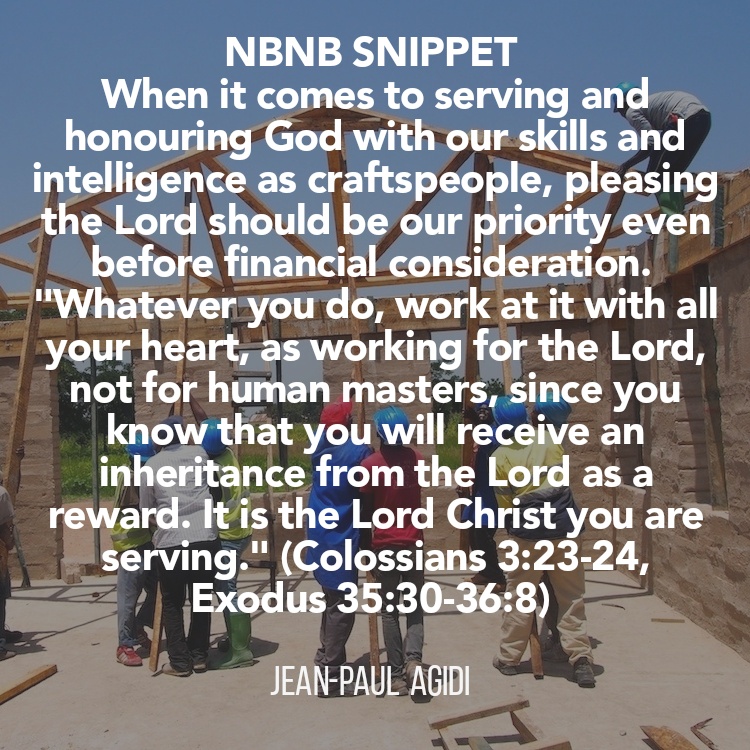 Beloved in the Lord, it is again important to know that craftspeople are stewards of their skill and intelligence, we realised from today’s Scripture reading that skill and intelligence are gifts from God which must be used to serve, honour and glorify God. It is rather unfortunate that some craftspeople in our churches have failed to appreciate themselves as stewards of God’s blessing who must avail themselves to serve with diligence when duty calls. In some churches, some craftspeople practically have to be begged to contribute their skills to the building of the sanctuary. Again, some are money conscious to the point that if their service to the Lord and the Church would not yield any financial gains then they would rather go elsewhere to practice their craftsmanship for money. Beloved in the Lord, in as much as we work for money, we must be considerate in our demands and understand that we are stewards who are first and foremost accountable to the Lord. When it comes to serving and honouring God with our skills and intelligence as craftspeople, pleasing the Lord should be our priority even before financial considerations. If we understand our roles as craftspeople in the house of God and avail ourselves to serve Him, the Lord will continually bless us even in our private businesses and contracts that involve our craftmanship. May Jesus Christ our Saviour find us doing our best in the house of God as craftspeople when He returns the second time. “Whatever you do, work at it with all your heart, as working for the Lord, not for human masters, since you know that you will receive an inheritance from the Lord as a reward. It is the Lord Christ you are serving.” (Colossians 3:23-24) Shalom.