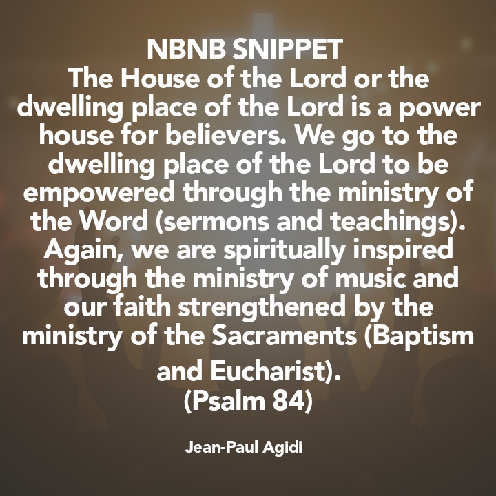 The House of the Lord or the dwelling place of the Lord is a power house for believers. We go to the dwelling place of the Lord to be empowered through the ministry of the Word (sermons and teachings). Again, we are spiritually inspired through the ministry of music and our faith strengthened through the ministry of the Sacraments (Baptism and Eucharist). Hebrews 10:23-25 encourages us to “… hold fast the confession of our hope without wavering, for he who promised is faithful. And let us consider how to stir up one another to love and good works, not neglecting to meet together, as is the habit of some, but encouraging one another, and all the more as you see the Day drawing near.” In other words, consistently meeting at the dwelling place of God makes us hold fast to our faith, sustain our love for one another and ultimately prepare for the second coming of our Lord Jesus Christ. Dear friend if we are not mentally, emotionally and spiritually prepared to encounter the Lord at His dwelling place, we may often go to His dwelling place empty and come out empty. It is like being a tenant for many years without meeting the landlord. This is the experience of many contemporary Christians. The dwelling place of the Lord has become human-centered and not God-centered. We have reduced the dwelling place of God to singing the praise of men and women who have deified themselves instead pointing worshippers to God, the dwelling place of the Lord has been reduced to a run way where some of our women come to Church dressed to impress their patrons. We are gradually losing the simplicity of dressing so that we may decrease and God may increase during our worship experience. Worship in some churches has moved from God-focus to human-focus worship. Paul admonishes us “… not be conformed to this world, but be transformed by the renewal of your mind, that by testing you may discern what is the will of God, what is good and acceptable and perfect.” (Romans 12:2). May we encounter the Lord at His dwelling place through the renewal of our minds. Shalom.