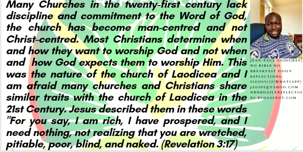 The twenty-first-century church is in danger of becoming man-centred rather than Christ-centred, mirroring the very traits that led to Laodicea’s downfall. Many today want to dictate the terms of their own worship, ignoring how and when God expects to be honoured. Jesus’s description of such people is haunting: “For you say, I am rich, I have prospered, and I need nothing, not realising that you are wretched, pitiable, poor, blind, and naked” (Revelation 3:17).